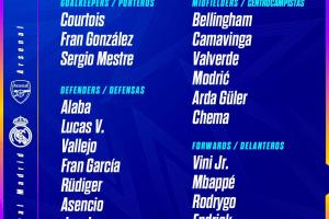 皇马欧冠客战阿森纳名单!库尔图瓦在列,琼阿梅尼停赛,门迪缺阵